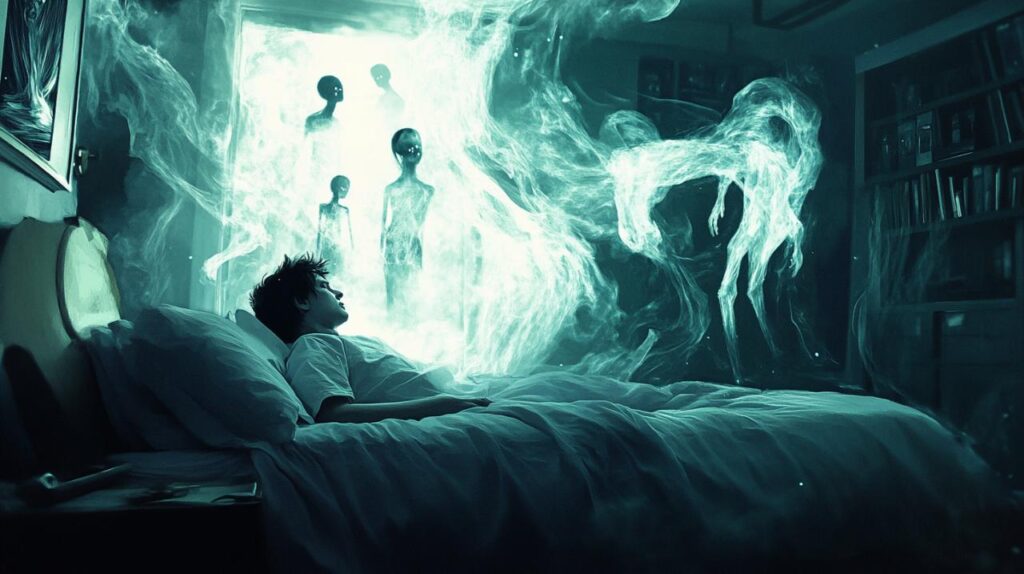 Un lien fascinant existe entre les récits de paralysie du sommeil et les témoignages d'enlèvements extraterrestres, un phénomène qui a captivé l'imagination populaire depuis les années cinquante. Les chercheurs en psychologie et en neurosciences ont identifié des similarités frappantes entre les descriptions d'abductions par des entités aliens et les symptômes caractéristiques de la paralysie du sommeil. L'incapacité de bouger, la présence d'êtres étranges au chevet du lit, les sensations de lévitation ou de déplacement du corps, et l'impression d'examens ou d'interventions corporelles correspondent précisément aux manifestations hallucinatoires de ce trouble du sommeil.